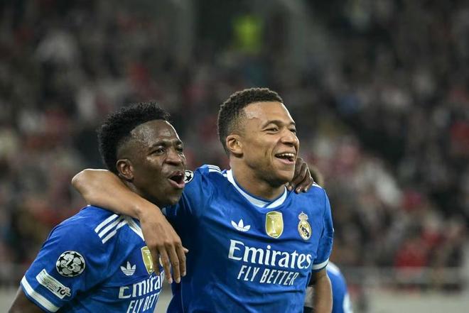 欧冠联赛阶段第5轮客场挑战奥林匹亚科斯的比赛中,姆巴佩在第59分钟的进球帮助皇家马德里取得4-2的领先。