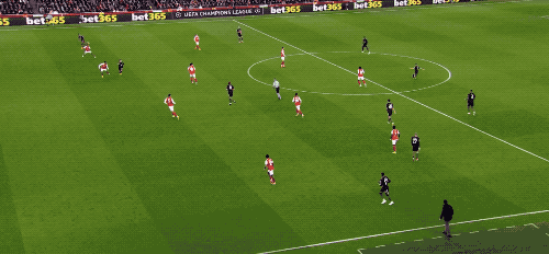 第47分钟,基米希仓促出球,萨卡获得绝佳机会,但一脚打高,相当可惜。