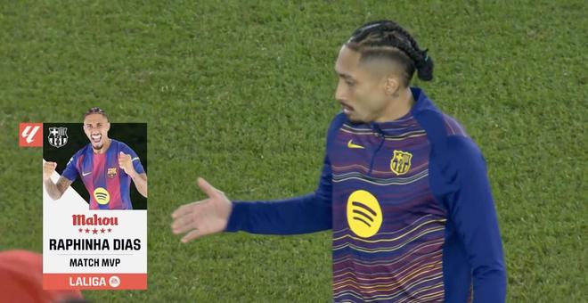 打入一球,拉菲尼亚当选巴萨vs马竞全场最佳球员